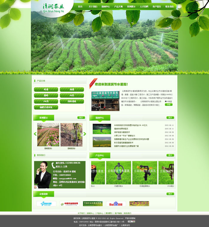 云南清潤節(jié)水灌溉是最具實力的、專業(yè)從事農(nóng)業(yè)節(jié)水灌溉設(shè)施(噴灌、滴灌、溫室大棚)工程設(shè)計、施工及產(chǎn)品銷售。采集自1998年以來400余個工程的設(shè)計、施工經(jīng)驗,為各類用戶提供全方位的溫室大棚及節(jié)水灌溉服務(wù)。