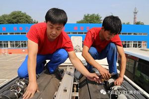 在陽光暴曬下,修理工們的額頭上滲出細(xì)密的汗珠,沿著臉頰往下滴。而我站在他們身邊早已大汗淋漓,有些體力不支。“你們這工作真是多重‘烤驗’,室外的高溫就讓人汗流浹背。這發(fā)動機(jī)能有100℃,撲面的熱氣更讓人呼吸不暢。還有排氣管的熱風(fēng),一吹到腿上皮膚都燒著痛。”修理工笑著擺了擺手:“加冷媒的工作算是輕松的,要是修空調(diào)冷凝器,就必須爬到車頂,頭頂著烈日,腳下是發(fā)燙的空調(diào)冷凝器,堪比烤‘鐵板燒’、蒸‘桑拿浴’,等修理完感覺自己像洗了個澡,渾身濕透了。”50分鐘后,冷媒加注完畢??尚蘩砉兩砗笥钟腥v車等待修理。“在高溫天,公交車也容易‘中暑’,就是天氣再熱我們也得及時搶修,不然會影響到線路的正常營運。”顧不得體息片刻,他們又開始檢查另一輛車的空鬧系統(tǒng)了。