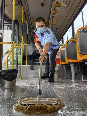 在“嚴(yán)”的制度管理下,五公司也將“情”字體現(xiàn)在工作的各個(gè)環(huán)節(jié)。在五公司開展衛(wèi)生大清掃活動(dòng)中,絕大部分的司機(jī)都是積極響應(yīng),但也有個(gè)別司機(jī)對(duì)突然增加的工作量不理解。針對(duì)此情況,五公司并沒(méi)有用制度及考核強(qiáng)制執(zhí)行,而是采取以“情”換情。拿花海公交場(chǎng)站來(lái)說(shuō),因?yàn)閯倓偼度胧褂?,?6輛車配備一個(gè)保潔人員的情況下,做到車輛衛(wèi)生精益求精只能通過(guò)司機(jī)自行進(jìn)行清掃。針對(duì)不理解的司機(jī),花海公交場(chǎng)站負(fù)責(zé)人張波副隊(duì)長(zhǎng)用行動(dòng)感化,他說(shuō):“我們的司機(jī)都很可愛(ài),只是個(gè)別司機(jī)對(duì)突然的工作轉(zhuǎn)變不適應(yīng),他們不做那就我來(lái)做,時(shí)間長(zhǎng)了他們看在眼里,記在心里,現(xiàn)在也都紛紛加入了車輛衛(wèi)生大清掃活動(dòng)。”