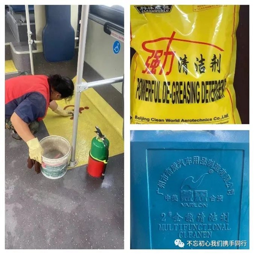 公交車的上車門腳踏板是乘客進入公交車的“第一步”,也是公交車內(nèi)衛(wèi)生情況的“第一眼”,但是對于公交車的清洗來說,這“第一步”和“第一眼”卻是最難清理的區(qū)域。二公司四隊和三公司二隊在發(fā)現(xiàn)傳統(tǒng)清潔劑和洗衣粉的清潔效果不理想后另辟蹊徑,通過網(wǎng)購的方式,購買車輛專用清洗劑。將原液和水進行配比后,對上下車門腳踏板、車廂內(nèi)部地板、以及地板與座椅的邊緣這些平時難以清理的地方進行浸泡后,再用清潔刷清理,效果非常好,讓公交車顯露原貌,“金蟬脫殼”!車輛專用清洗劑的優(yōu)點是:1、沒有特殊味道,保證車廂空氣良好;2、清潔人員進行洗刷操作時,沒有腐蝕性,不傷手;3、泡沫少,避免地板出現(xiàn)白繭現(xiàn)象;4、經(jīng)濟實惠,配比操作簡單。