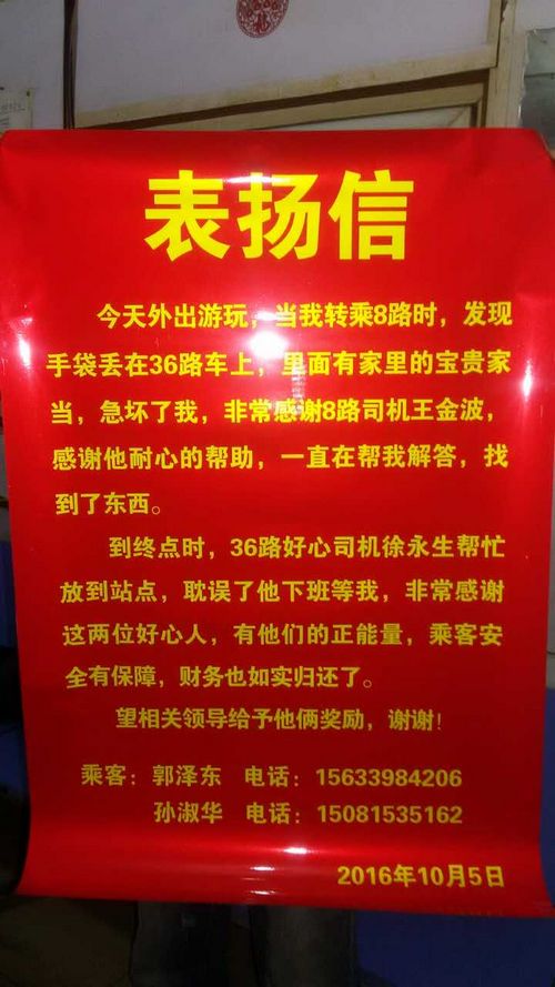 次日郭先生夫婦特意送來(lái)表?yè)P(yáng)信,表示感謝。盡管事隔一天,但郭先生的心情仍然很激動(dòng),并且說(shuō)話語(yǔ)速也比較快,可以看出他丟失的東西是何等重要。