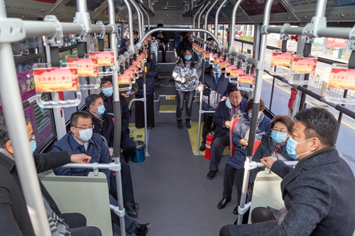 隨后,市人大代表們分別登上三輛新能源公交車,前往下一視察地點。郭彥洪一行詳細(xì)了解了我市新能源公交車結(jié)構(gòu)以及公交車運營里程、電池續(xù)航里程、安全性等問題;對新能源公交車乘車環(huán)境、技術(shù)亮點及新功能進(jìn)行了體驗,指出降低門口踏板、安裝空氣凈化器、USB充電插座等人性化設(shè)施,為百姓乘坐公交車提供了方便;360度電子后視鏡、液體安檢儀、防碰撞預(yù)警裝置等新功能,為百姓提供了更加安全的乘車環(huán)境;純電動新能源公交車相比清潔能源車輛,噪音小、零污染、零排放,節(jié)能效果顯著,為我市節(jié)能減排和大氣污染防治發(fā)揮了積極作用。