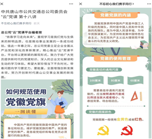 另外,總公司黨委還組織領(lǐng)導(dǎo)班子成員對《中國共產(chǎn)黨黨徽黨旗條例》內(nèi)容進(jìn)行了學(xué)習(xí),并將如何規(guī)范使用黨旗黨徽的規(guī)定內(nèi)容制作成“云黨課”,下發(fā)各基層黨組織及黨員干部進(jìn)行學(xué)習(xí)。