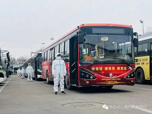 面對嚴(yán)峻的疫情防控形勢,唐山公交于3月19日迅速啟動了公司疫情防控應(yīng)急預(yù)案,總經(jīng)理劉東占帶領(lǐng)應(yīng)急領(lǐng)導(dǎo)小組成員,24小時堅守崗位靠前指揮調(diào)度,并要求:全公司無條件堅決迅速響應(yīng)市委市政府指令,高質(zhì)高效完成公司各項疫情防控工作及保障任務(wù)。與此同時,所屬基層單位的10個黨總支及48個黨支部,立即通過各種形式組建了應(yīng)急領(lǐng)導(dǎo)組織以及經(jīng)嚴(yán)格培訓(xùn)的150人常備應(yīng)急公交駕駛員隊伍,未封控小區(qū)的公司黨員領(lǐng)導(dǎo)干部堅守崗位,除做好場區(qū)日常防控、車輛技術(shù)檢測、能源補給、消毒消殺及職工健康排查任務(wù)外,隨時待命做好應(yīng)急任務(wù)響應(yīng),確保一有情況隨時拉得出、打的贏。