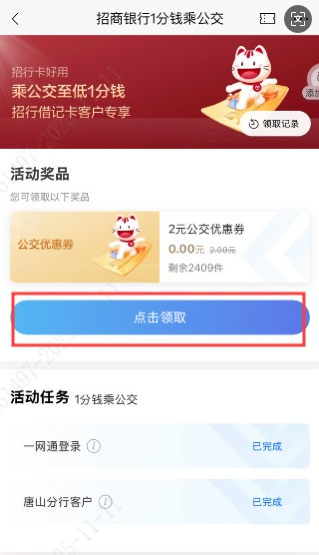 根據(jù)“參與路徑”進(jìn)入活動(dòng),先點(diǎn)擊“領(lǐng)取公交優(yōu)惠券”活動(dòng),領(lǐng)取優(yōu)惠券;長按“招商銀行App”-乘車碼,掃碼乘車;根據(jù)“參與路徑”進(jìn)入活動(dòng),點(diǎn)擊“乘公交領(lǐng)好禮”活動(dòng),參與抽獎(jiǎng)