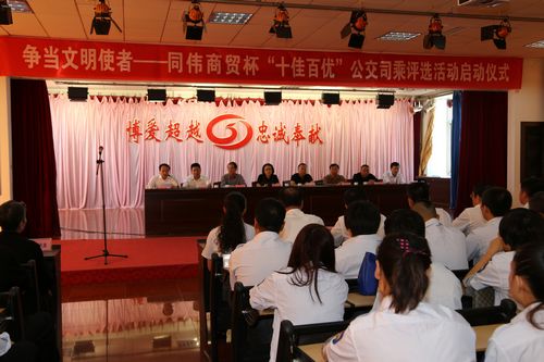 為推進(jìn)唐山市精神文明建設(shè),培育文明禮讓和諧之風(fēng),不斷提升公交服務(wù)質(zhì)量,由唐山市精神文明建設(shè)委員會辦公室、市城管局、市交通運輸局、唐山廣播電視臺、市公共交通總公司、同偉商貿(mào)有限公司聯(lián)合舉辦的“爭當(dāng)文明使者—同偉商貿(mào)杯·十佳百優(yōu)公交司乘評選”活動于9月18日正式拉開帷幕。市委宣傳部副部長、市文明辦主任李麗,市委宣傳部副部長、唐山廣播電視臺臺長王力,市城管局副調(diào)研員張志棟,市交通運輸局城客處處長楊文強,總公司總經(jīng)理趙俊良、黨委書記夏保良和部分班子成員,同偉商貿(mào)有限公司副總經(jīng)理盧志敏出席啟動儀式,司乘代表、乘客代表和新聞媒體代表共計300余人參加了啟動儀式。